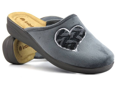 Měkké dámské pantofle - INBLU KATE, šedé se srdíčkem