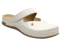 Dámské kožené pantofle Leon 161, bílé na dřevěné podešvi