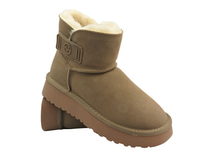 Dámské kožené sněhule na platformě Sokolski Z24-531 Camel Slip-on