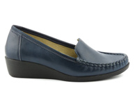 Pohodlné, kožené boty, polské dámské mokasíny - HELIOS Komfort 405, tmavě modrá