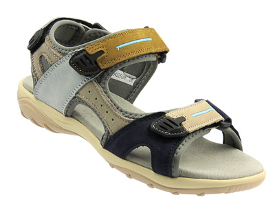 Kožené dámské sandály na suchý zip tmavě modrá Helios Komfort 127