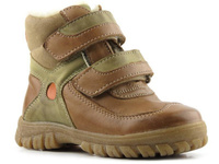Kožené dětské boty na suchý zip - Helios Komfort 006, olivová