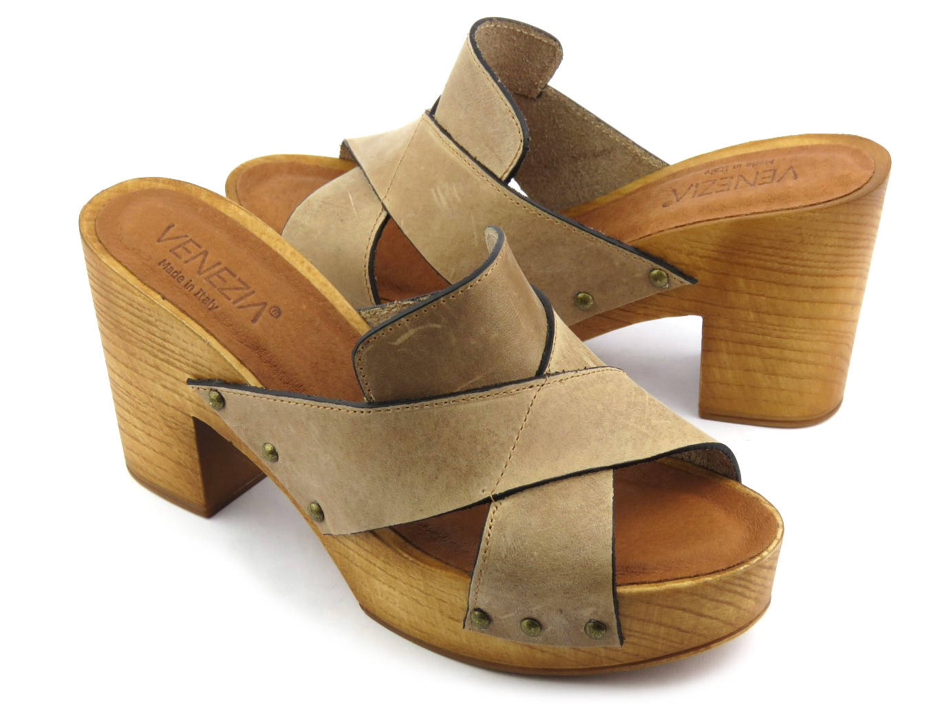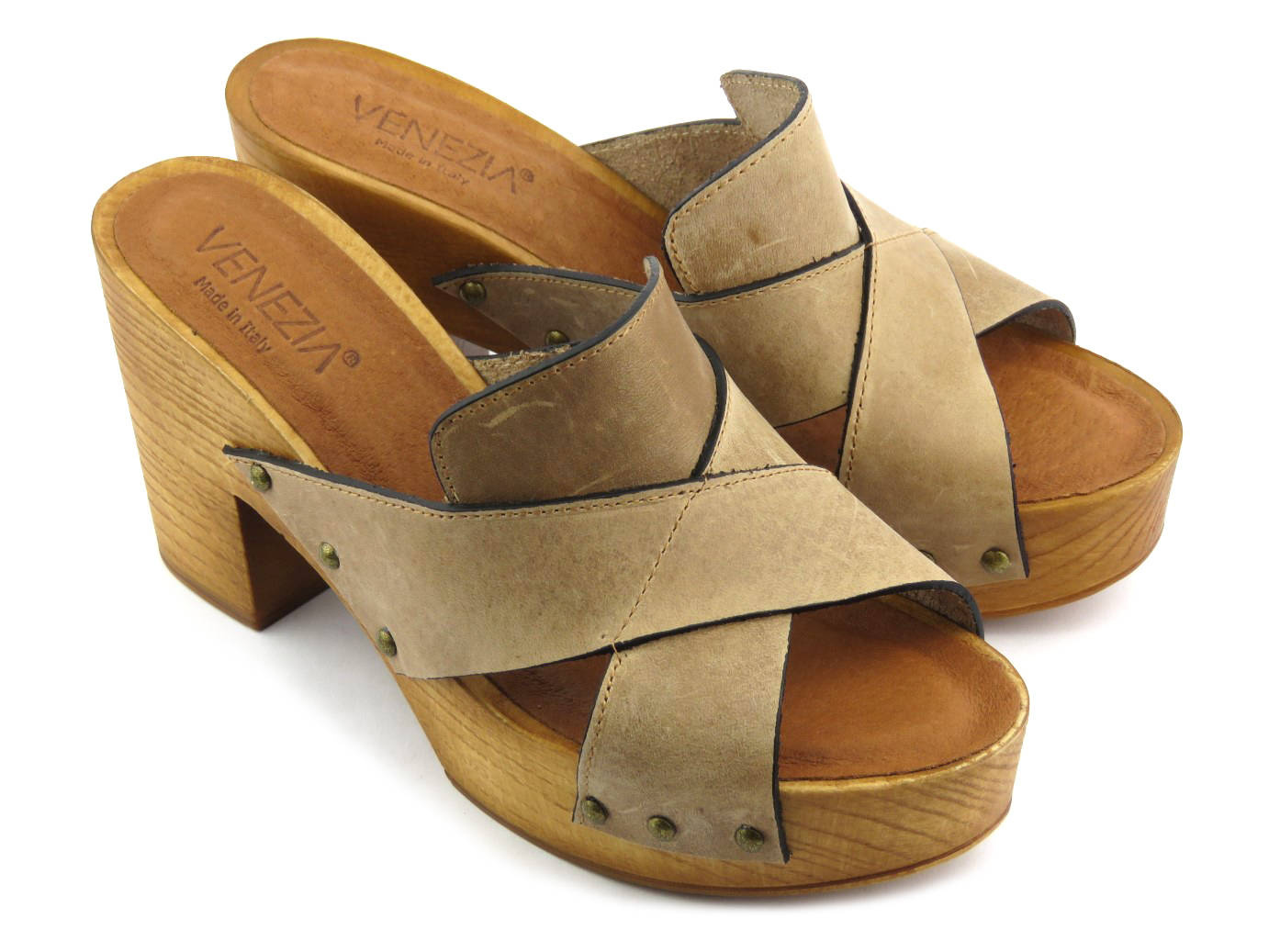 Dámské žabky, dřeváky na vysokých podpatcích - VENEZIA 739ST CRAZY BEIG, béžová