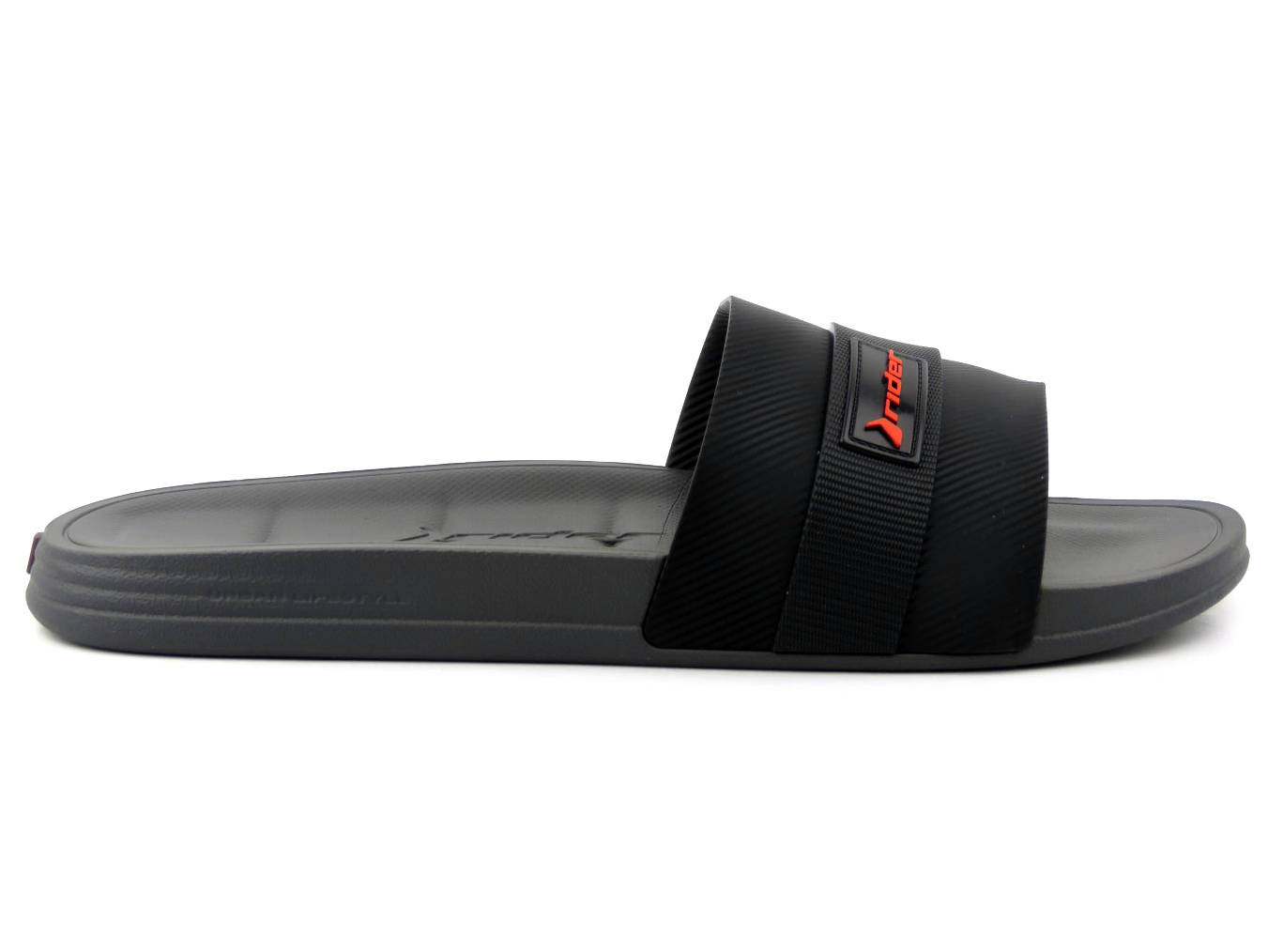 Pánské žabky renomované značky Rider jsou vyrobeny z vysoce kvalitních materiálů . Široký gumový pásek a gumová podšívka zajišťují pohodlí při používání. Model je voděodolný - voda z něj stéká a rychle schne. Pružná podrážka dobře přilne k zemi a poskytuje tlumení nárazů. Na materiálovém pásku svršku je červené logo značky. Model je lehký a pružný.