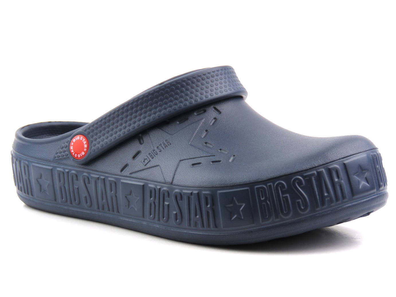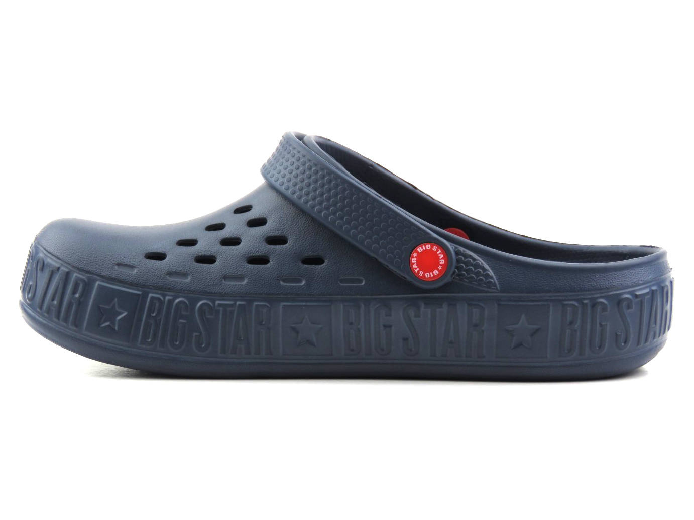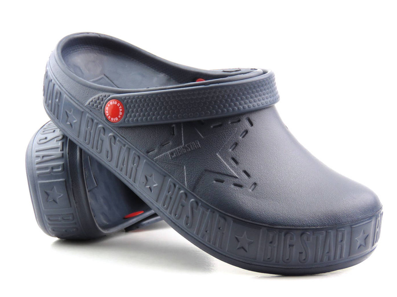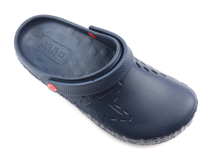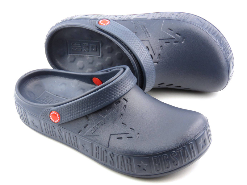 Žabky od renomované značky Big Star jsou pohodlné a na pohled módní . Jsou vyrobeny ze světle námořnické modré pěny . Mají mobilní pásek , který lze umístit za patu, díky kterému žabky nekloužou z nohy. Protiskluzové výstupky minimalizují klouzání a jemně masírují chodidla, díky čemuž je model ještě pohodlnější. Pěnové žabky jsou voděodolné , takže se mohou skvěle hodit na výlety na pláž nebo do bazénu. Otvory ve svršku propouštějí vzduch, takže noha může dýchat a žabky rychleji schnou. Silná podrážka tlumí chodidlo od nerovností a zároveň je velmi lehká. Svršek zdobí hvězda - symbol značky Big Star. Námořnické modré žabky dobře zapadnou do letních stylů.