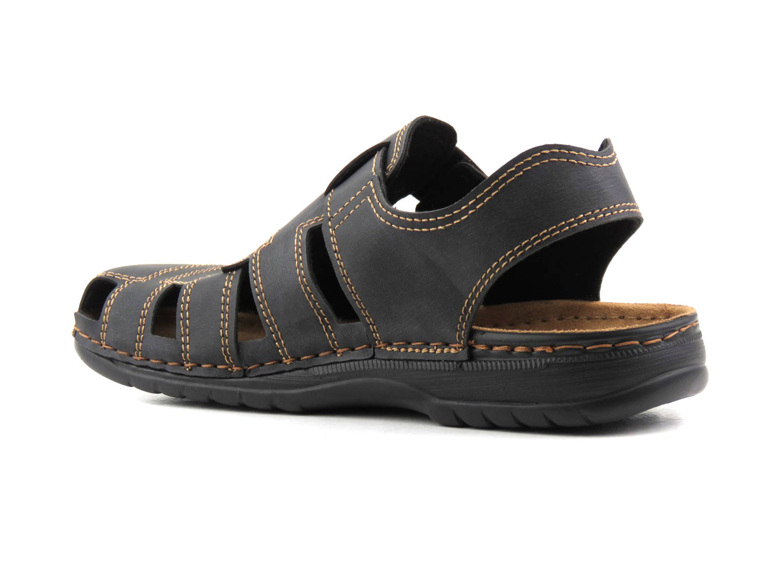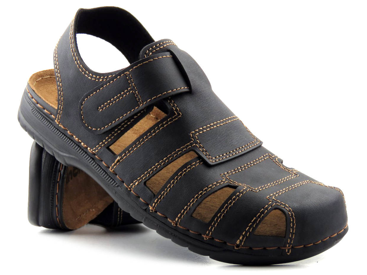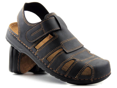 Pánské sandály Inblu jsou z vnější strany vyrobeny z černé ekologické kůže . Měkká podšívka je vyrobena z plstěného materiálu a stélka je vyrobena z pohodlné ekologické kůže. Zapínání na suchý zip umožňuje rychlé nasazení. Podrážka je lehká, pružná a dobře drží na zemi. Sandály zakrývají prsty u nohou, což poskytuje dodatečnou ochranu například v případě nárazu. Zajímavé prošívání dodává modelu charakter.