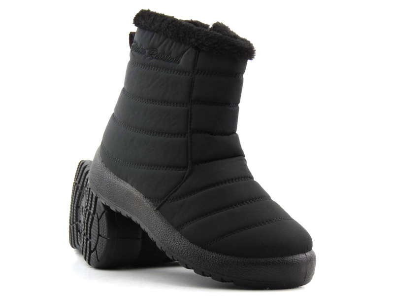 NOVINKY Dámské zimní boty jsou vyrobeny z kluzkého textilního materiálu s voděodolnými vlastnostmi . Vnitřek je zateplen hustou kožešinou , která poskytuje teplo a navíc zvyšuje komfort chůze. Zip umožňuje rychlé a pohodlné nazouvání. Silná podrážka poskytuje vynikající izolaci od země a má protiskluzové vlastnosti . Černý model zdobí prošívání na svršku a kožešina vyčnívající zvenku.