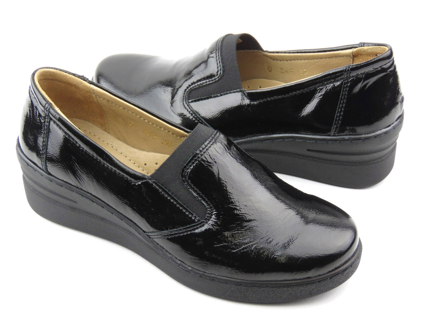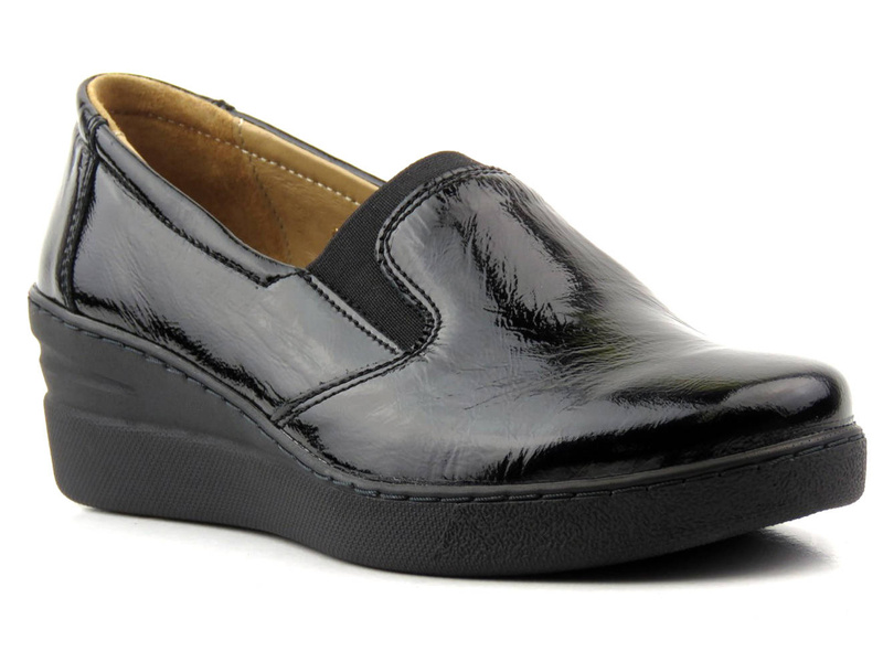 Dámské boty renomované polské značky Helios Komfort jsou vyrobeny z vysoce kvalitní přírodní lakované kůže v univerzální černé barvě. Měkká kožená podšívka zajišťuje vysoký komfort pro nohy. Guma všitá do svršku se přizpůsobí noze. Díky němu je nasazování rychlé a pohodlné . Špička je bezešvá, kulatá - neskřípe prsty. Celé je to nasazeno na pohodlném 5 cm klínku z lehkého materiálu. Mírně zvyšuje a nekazí pohodlí při chůzi.