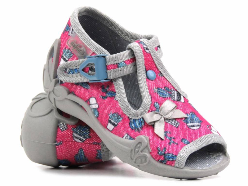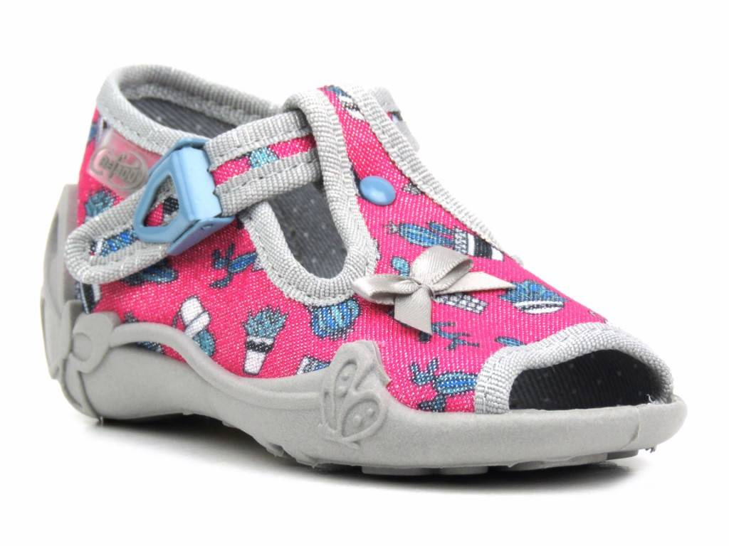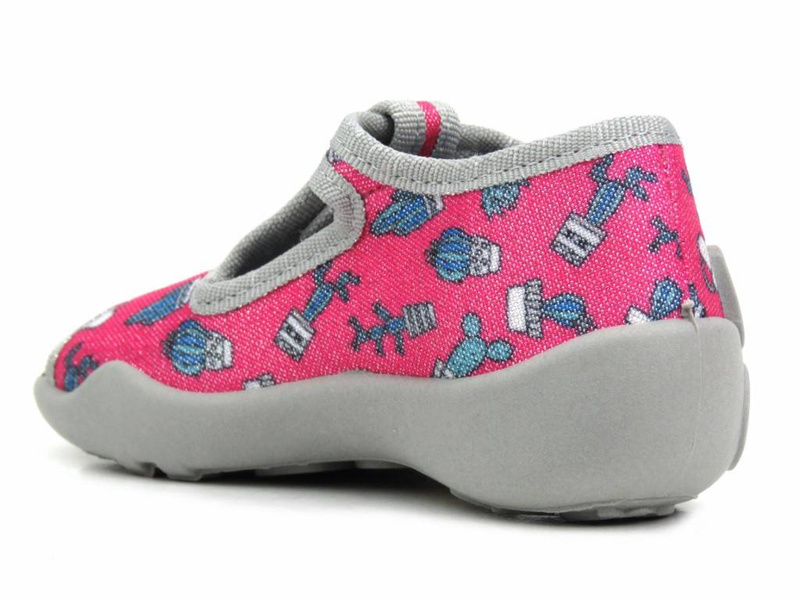 Boty osvědčené značky Befado jsou vyrobeny z odolné růžové látky . Vložka je vyrobena z měkké tkaniny .