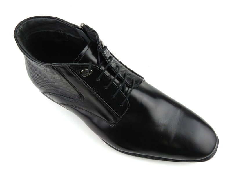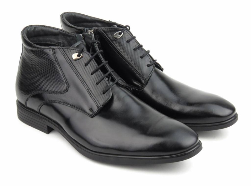 Pánské boty polské značky Conhpol jsou vyrobeny z vysoce kvalitní lesklé černé přírodní kůže .