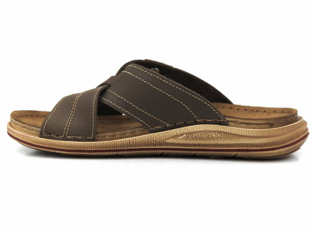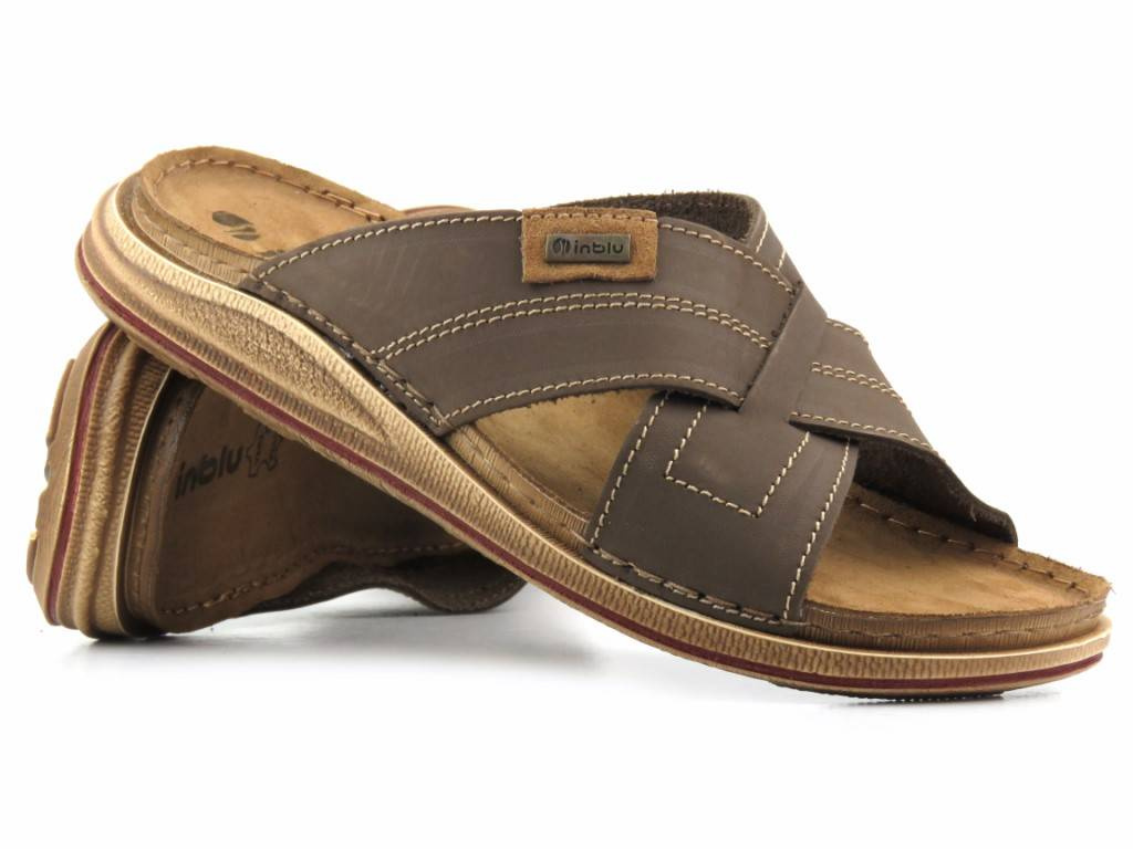 Pánské kožené žabky se dvěma pásky - INBLU VE-05, tmavě hnědé