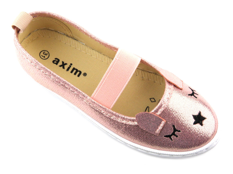 Dětská obuv AXIM je vyrobena z kvalitní látky v růžové barvě s krásným leskem.