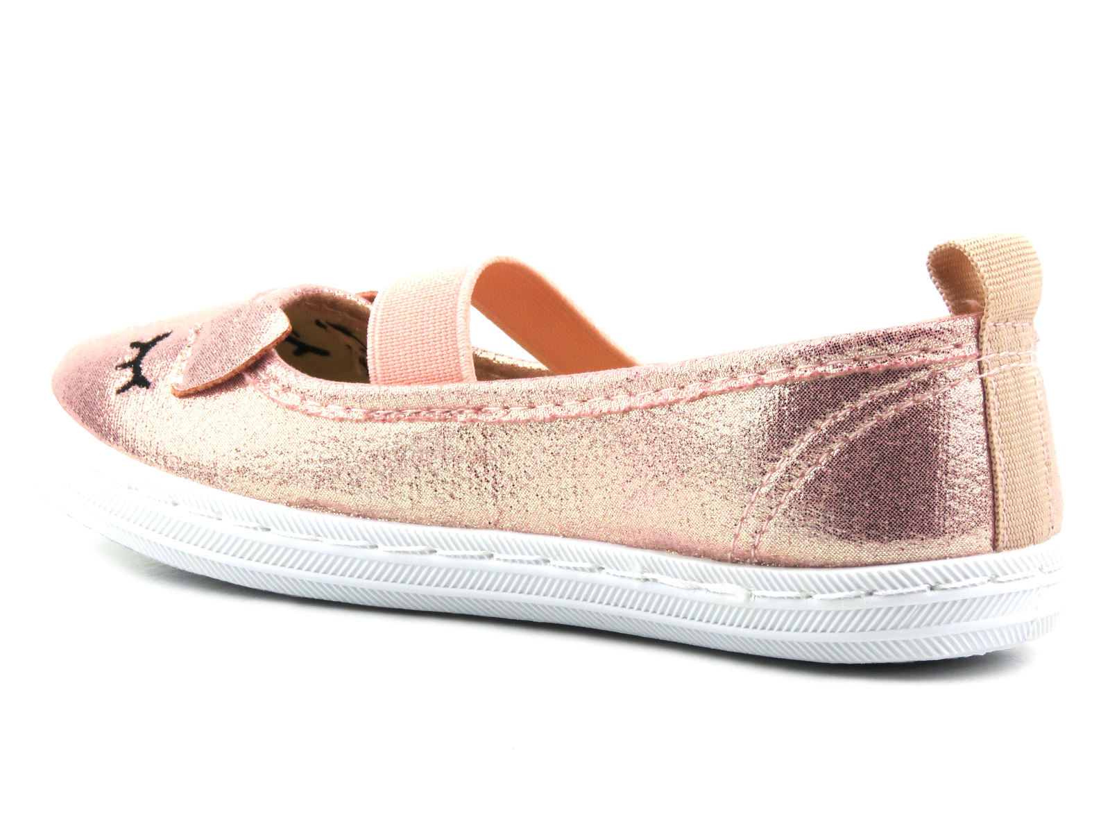 Kovový lesk a smajlík s ušima na nose dodávají dívčí šarm.