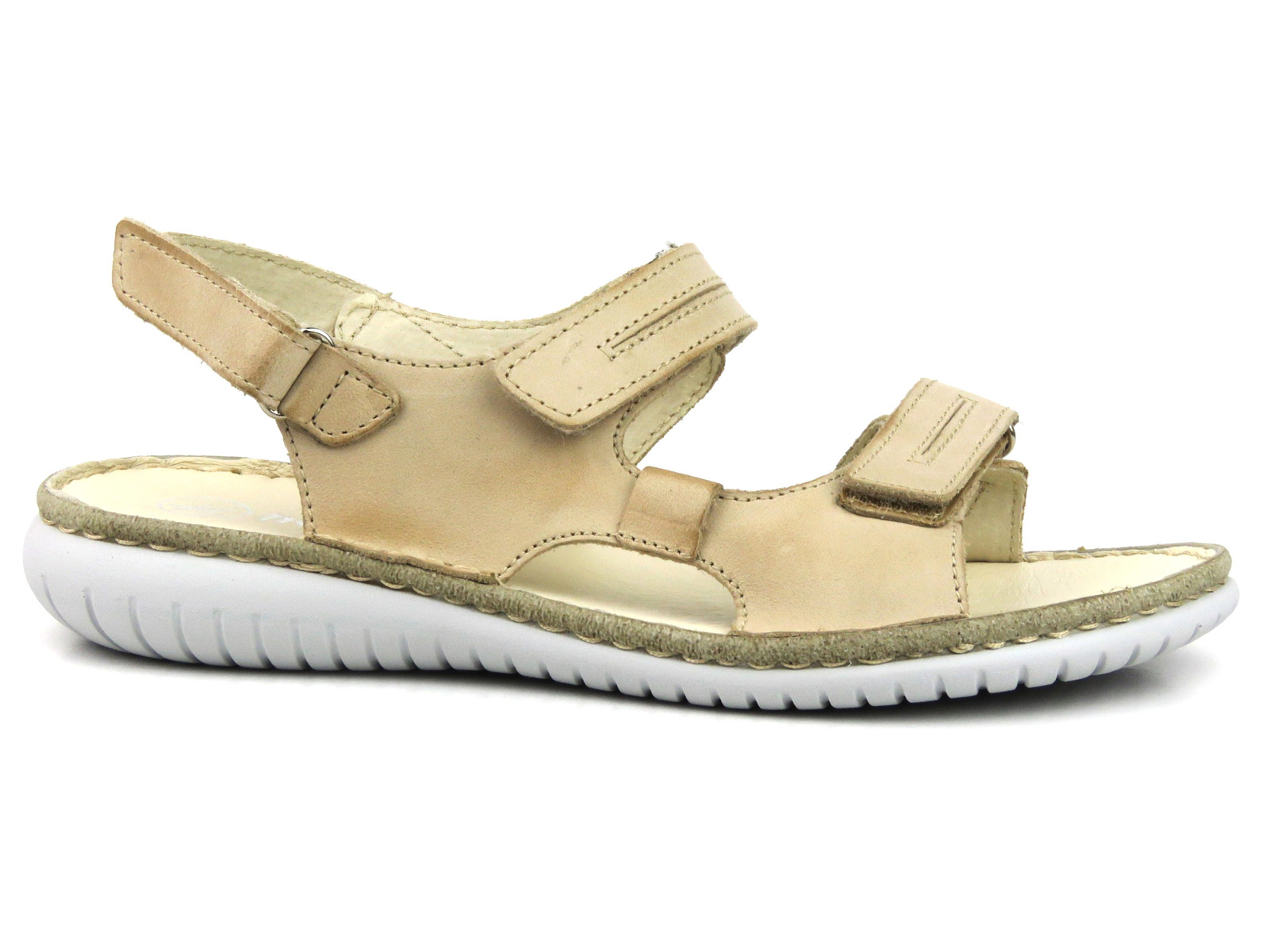 Dámské sandály renomované polské značky Helios Komfort jsou vyrobeny z vysoce kvalitní přírodní, světle béžové lícové usně .