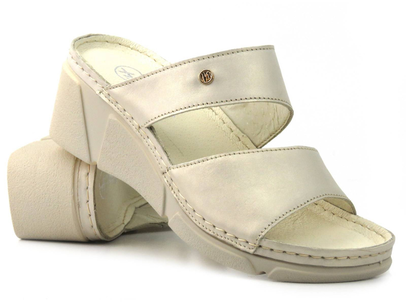 Dámské žabky renomované polské značky Helios Komfort jsou vyrobeny z kvalitní přírodní celousně zlaté barvy s krásným leskem.
