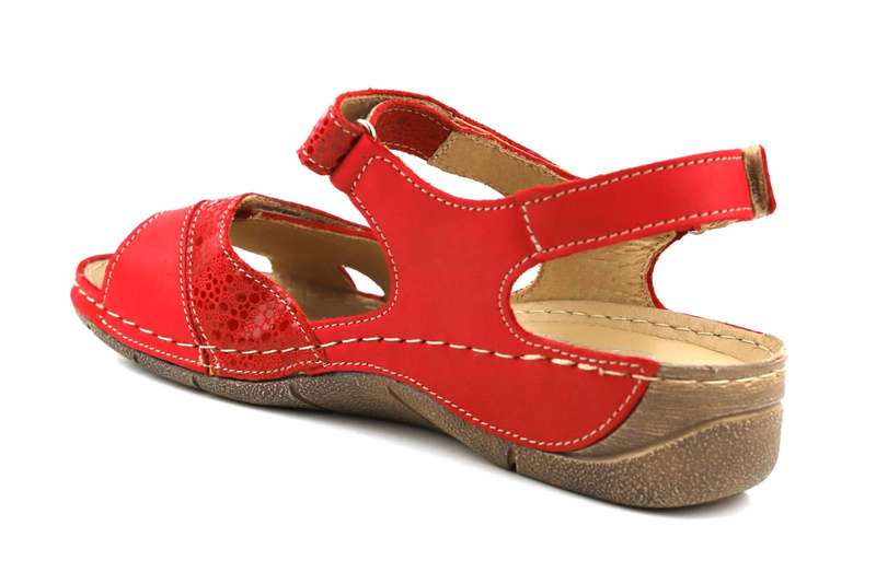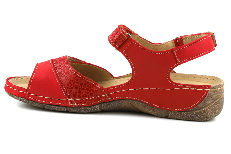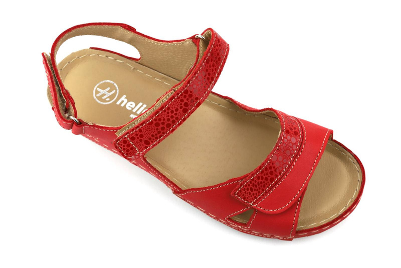 Dámské sandály renomované polské značky Helios Komfort jsou vyrobeny z kvalitní, červené, celozrnné přírodní kůže .