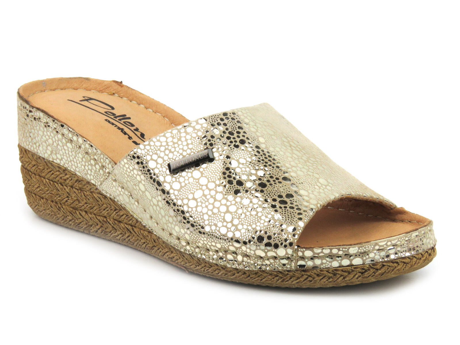 Dámské žabky polské značky Pollonus jsou vyrobeny z kvalitní přírodní kůže v lesklé zlaté barvě.