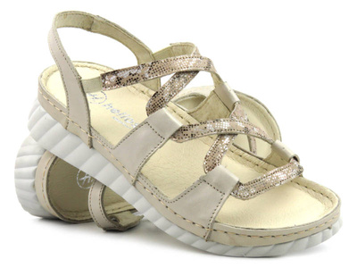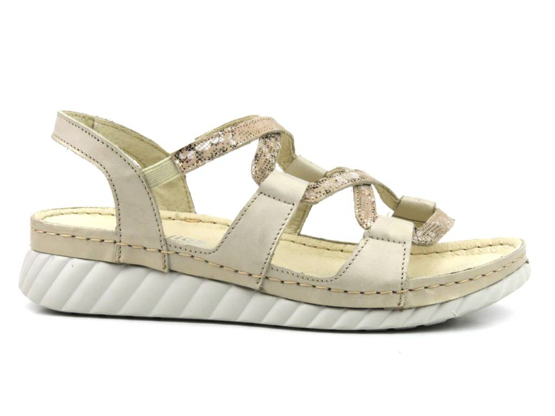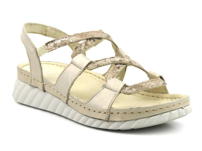Dámské sandály renomované polské značky Helios Komfort jsou vyrobeny z kvalitní přírodní lícové kůže zlaté barvy .