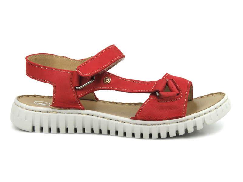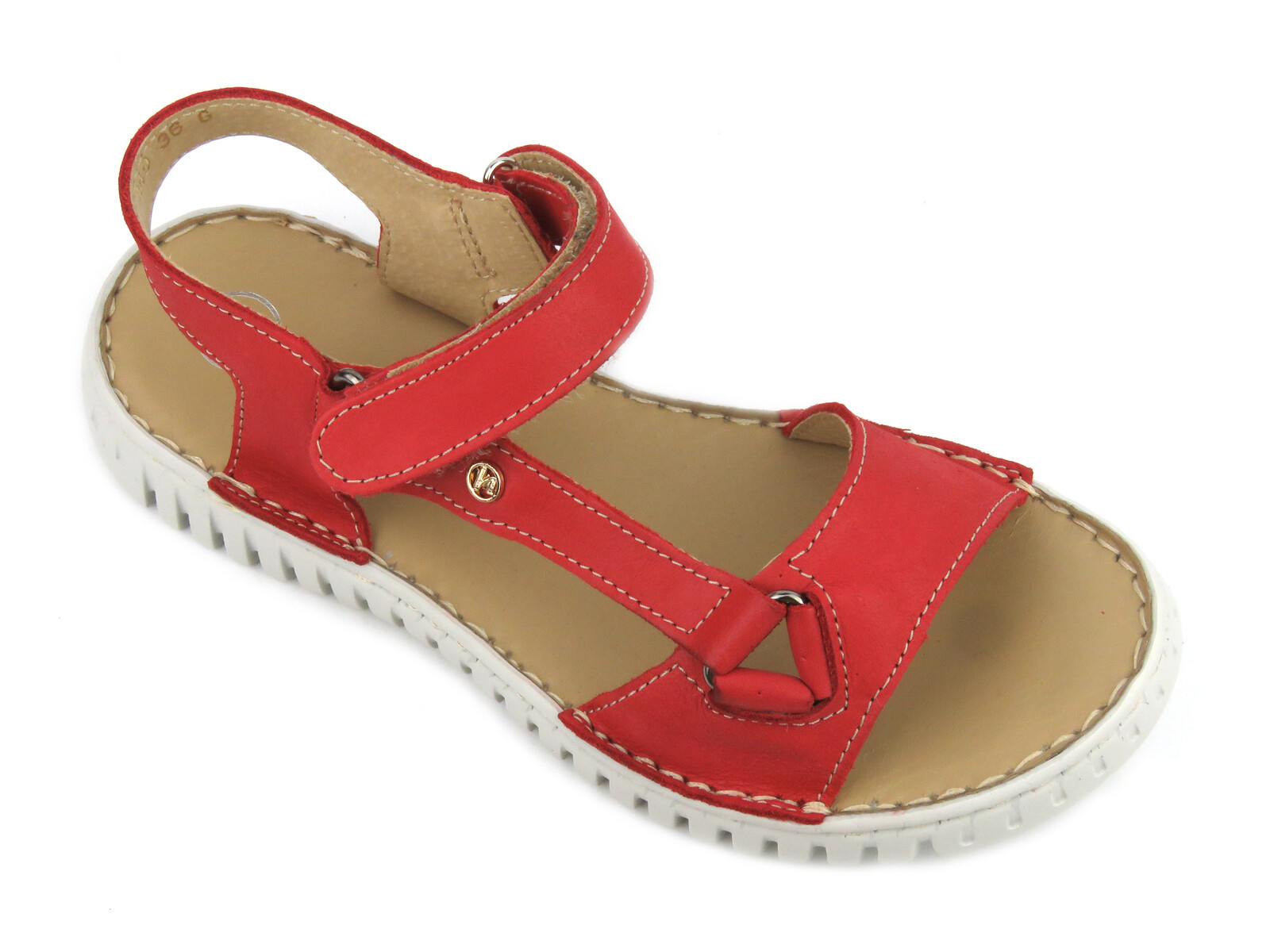 Dámské sandály renomované polské značky Helios Komfort jsou vyrobeny z kvalitní, červené, celozrnné přírodní kůže .