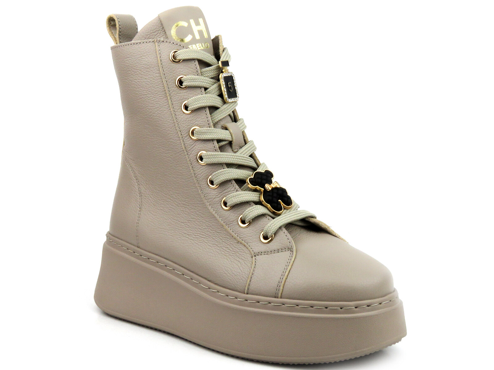 Dámské kotníkové boty renomované značky CheBello jsou vyrobeny z vysoce kvalitní béžové lakované kůže .