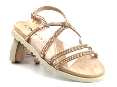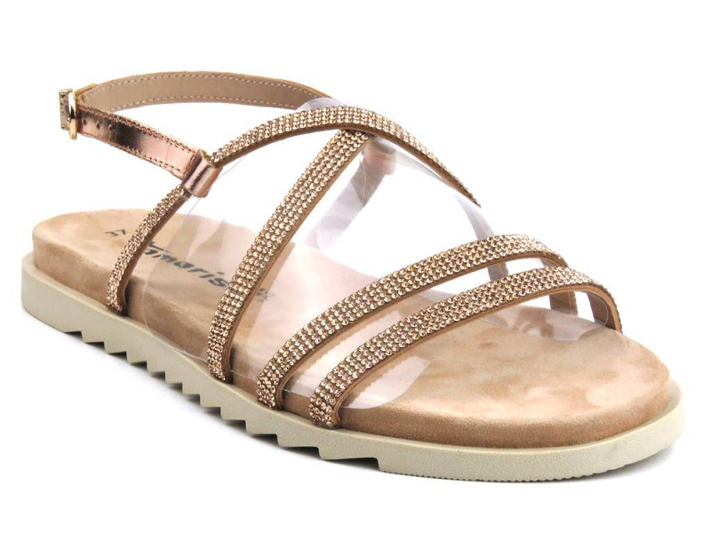 Dámské sandály renomované značky Tamaris jsou vyrobeny z kvalitní přírodní kůže v odstínu měděný glam - růžové zlato.