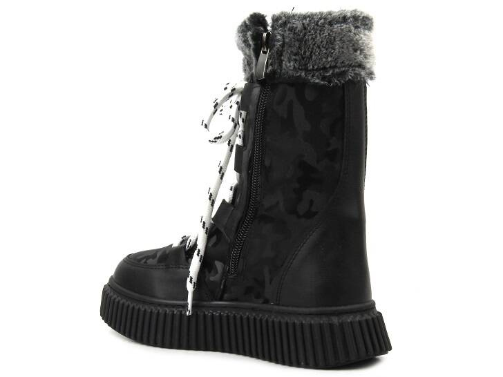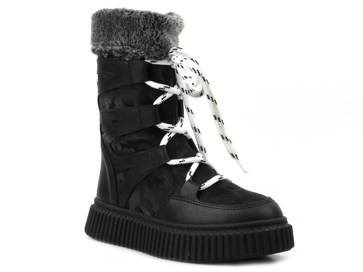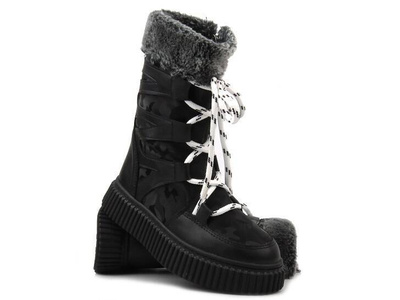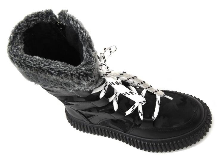 Kozačky se vyznačují kožešinou v horní části svršku a tkaničkami v kontrastní bílé barvě.