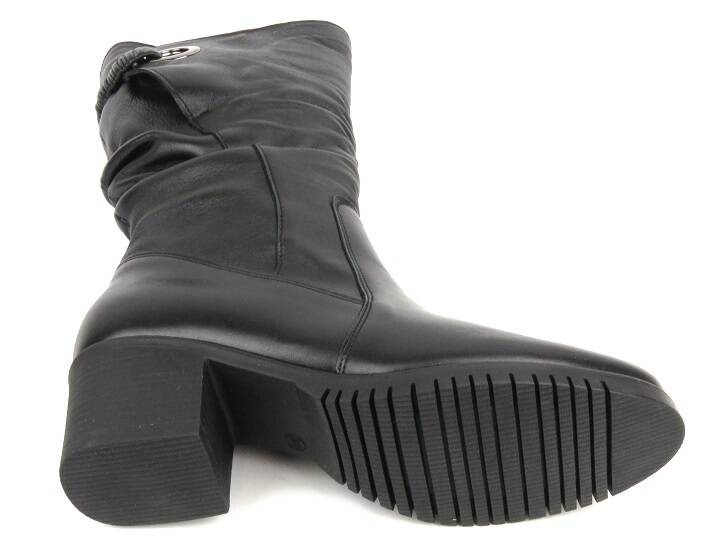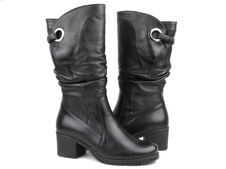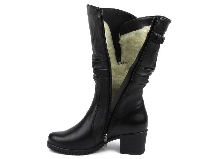 Dámské kozačky polské značky Galant jsou vyrobeny z vysoce kvalitní přírodní kůže v černé barvě . Vnitřek boty je zateplen hřejivou ovčí podšívkou , která příjemně obepíná nohu .