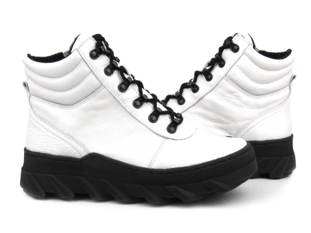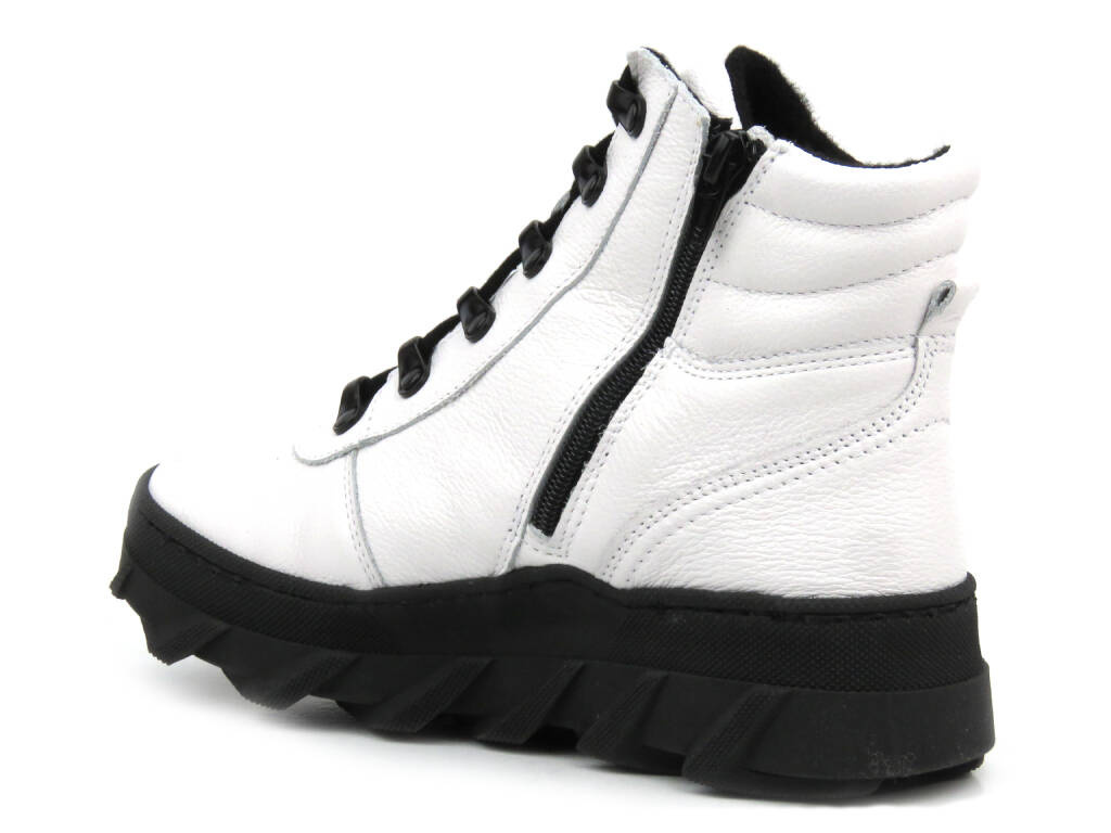 Dámská zimní obuv polské značky Wasak je vyrobena z kvalitní celozrnné přírodní kůže v krásné bílé barvě. Vnitřek obuvi je zateplen fleecem , který dodává teplo a měkkost. Uvnitř je na patě vložka z přírodní kůže