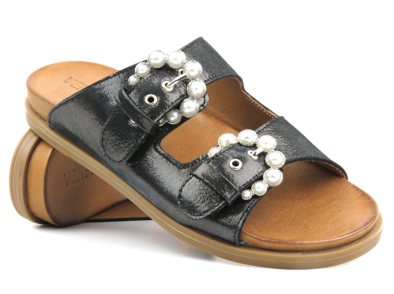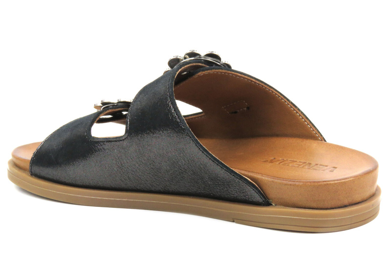 Dámské žabky renomované značky Venezia jsou vyrobeny z vysoce kvalitní černé přírodní kůže .