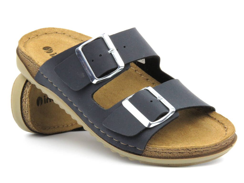 Dámské žabky s koženou vsadkou - INBLU AA-67, tmavě modrá
