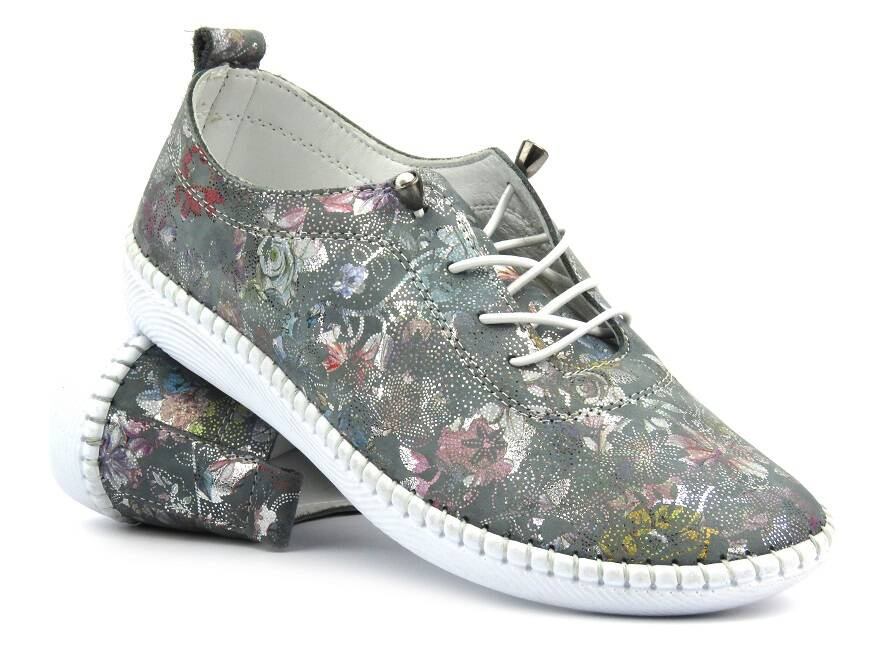 Dámské boty renomované polské značky Helios Komfort jsou vyrobeny z vysoce kvalitní přírodní bílé lícové kůže s květinovým vzorem.