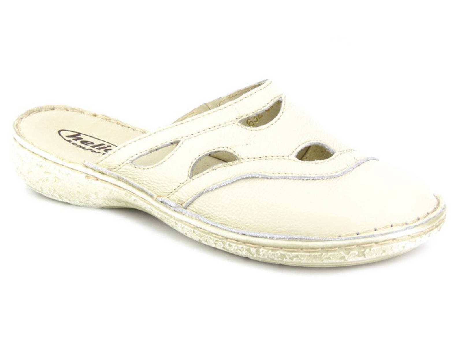 Pohodlné dámské kožené žabky - HELIOS Komfort 632, ecru