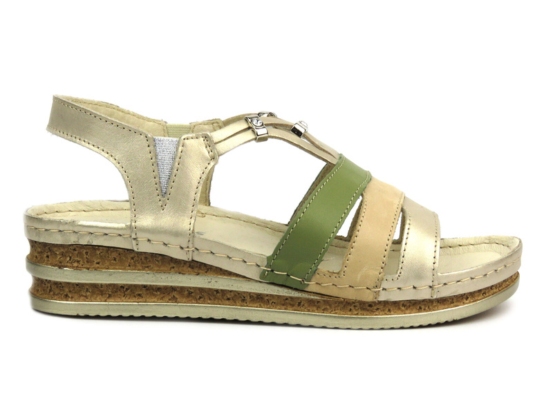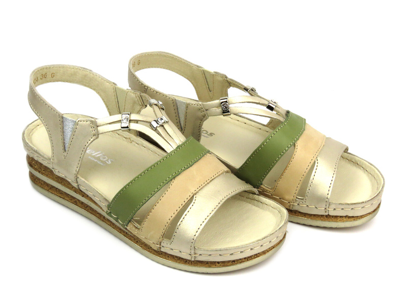 Dámské sandály renomované polské značky Helios Komfort jsou vyrobeny z kvalitní celozrnné přírodní kůže v odstínu světle hnědé. Měkká kožená podšívka zajišťuje vysoký komfort pro nohy. Pod vložkou je měkká SOFT houbička . Díky pohodlnému zapínání na suchý zip lze boty snadno přizpůsobit noze. Svršek s motivy trojúhelníků je osazen na silné, dřevěné podrážce s výrazně vyznačenými drážkami.
