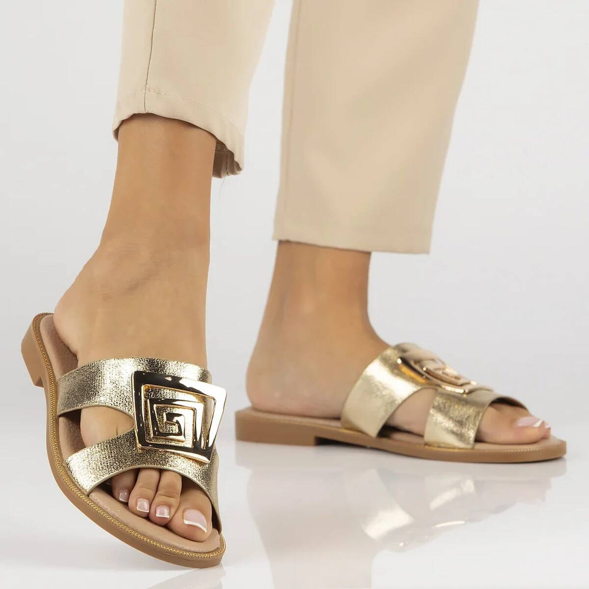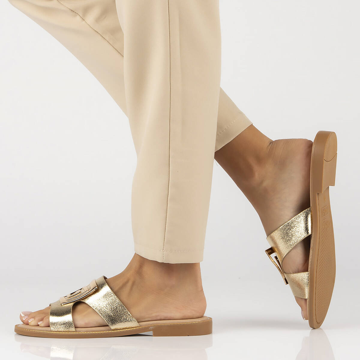 Minimalismus s nádechem elegance – zlaté sandály Filippo DK3703/25 jsou klasika v moderním provedení. Svršek z eko kůže jemně obepíná chodidlo a zvýrazňuje jeho tvar. Díky nastavitelnému pásku na patě se sandály perfektně přizpůsobí noze, zatímco kožená stélka zaručuje maximální pohodlí po celý den.