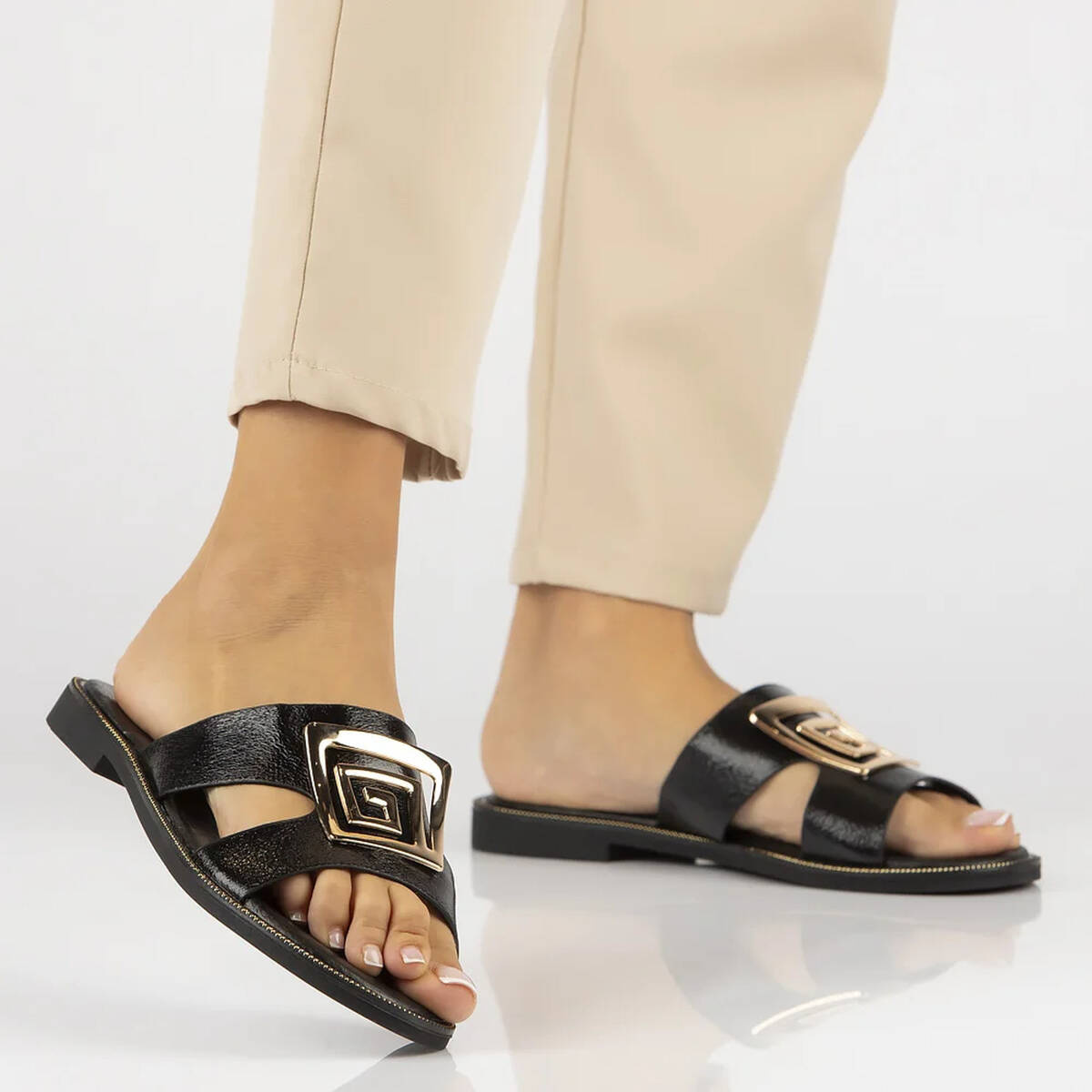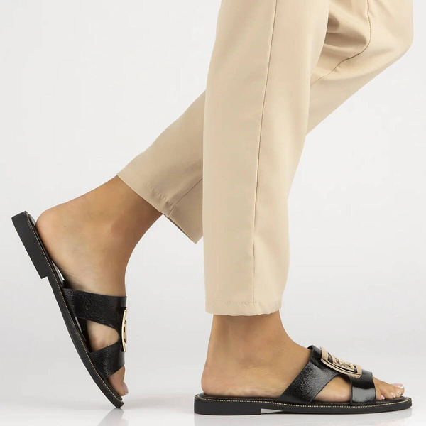 Dámské pantofle značky Filippo jsou vyrobeny z ekologické kůže v klasické černé barvě.