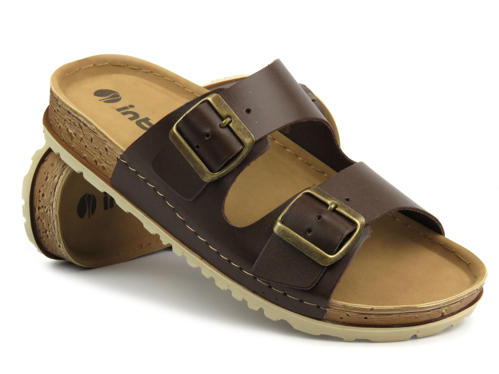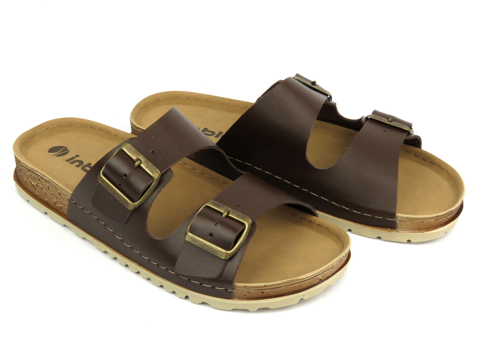 Pánské pantofle s přezkami tmavě hnědé INBLU RU-2I