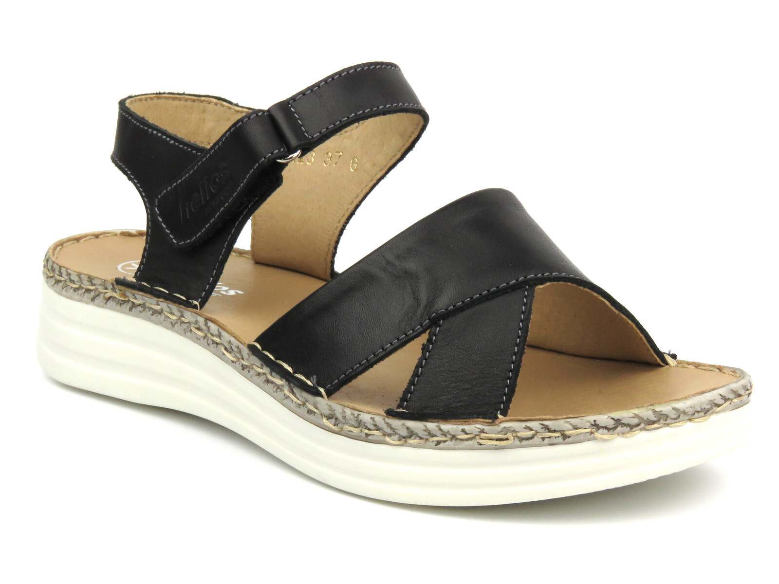 Dámské sandály oblíbené polské značky Helios Komfort jsou vyrobeny z vysoce kvalitní hladké přírodní kůže v černé barvě.