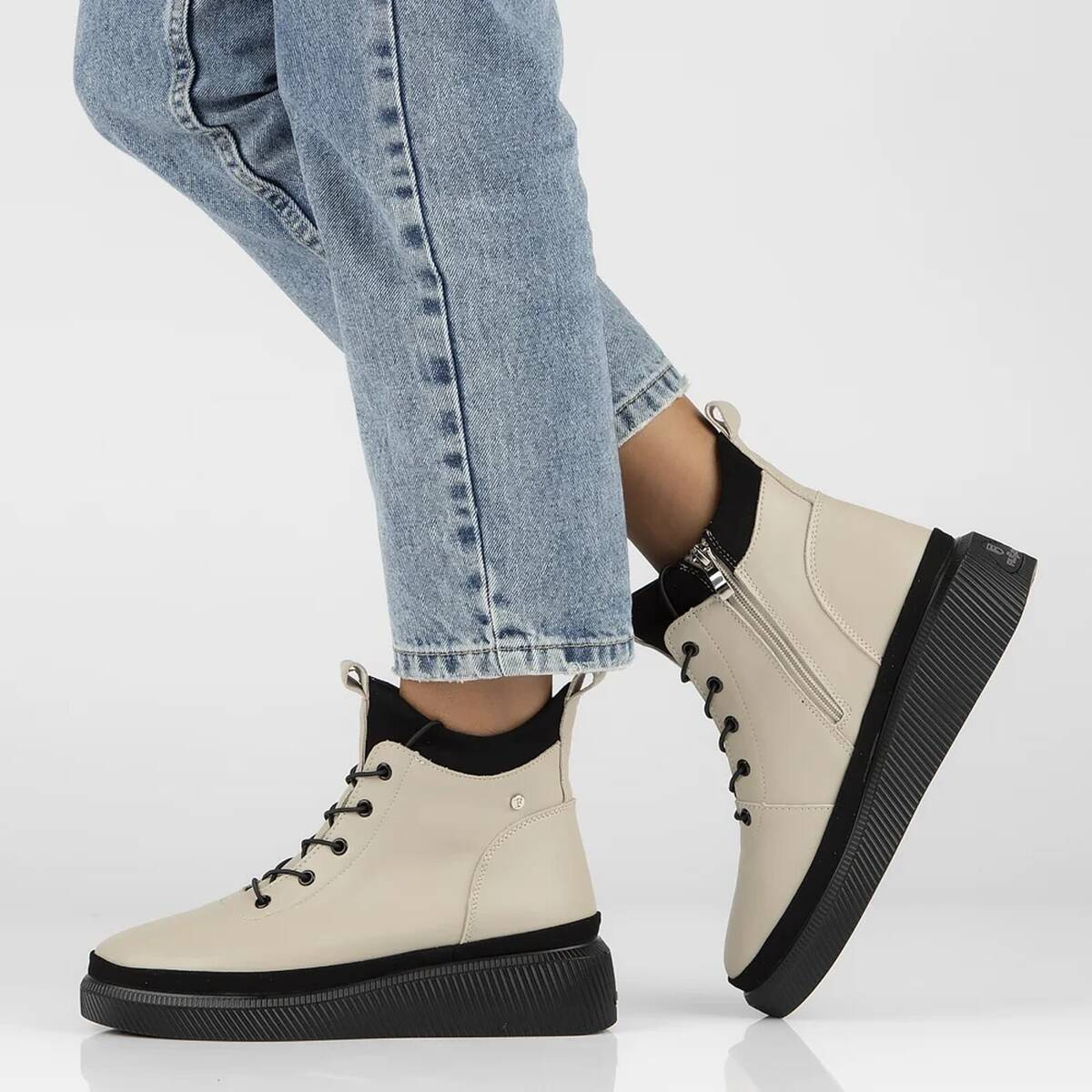 Dámské kožené kotníkové boty na platformě – Filippo DBT4799/24, béžové