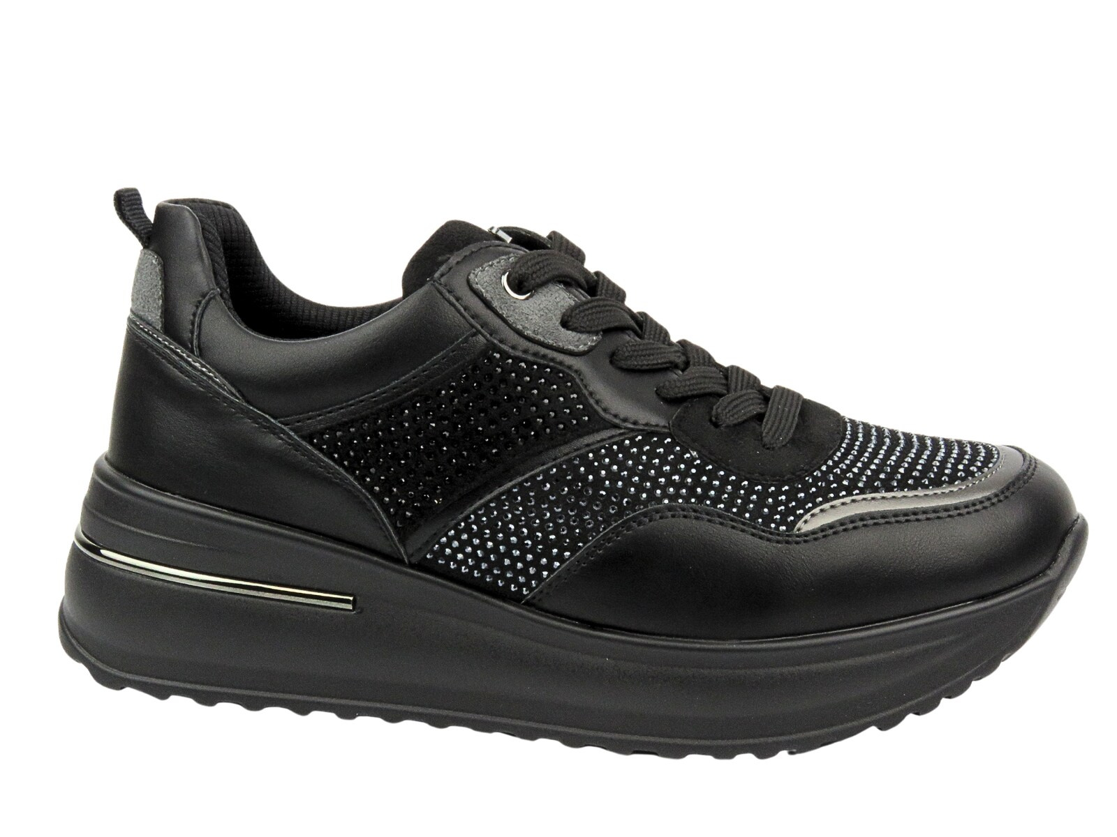 Inblu IN-397 jsou moderní dámské sneakersy, které kombinují sportovní pohodlí s ženským akcentem. Jejich černý svršek zdobený lesklými krystalky přitahuje pozornost a dodává outfitu nádech elegance. Jsou ideální pro ženy, které oceňují pohodlí a stylový vzhled každý den.