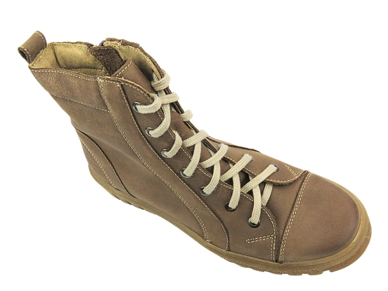 Dámské kozačky renomované polské značky Helios Komfort jsou vyrobeny z kvalitní celozrnné přírodní kůže ve světlém odstínu hnědé. Vnitřek je zateplen obuvnickým fleecem. Zip umožňuje rychlé a pohodlné obouvání . Díky úpravě tkaniček lze svršek dobře přizpůsobit noze. Silná trapperová podrážka z termokaučuku dobře izoluje od země, tlumí nárazy a má protiskluzové vlastnosti.
