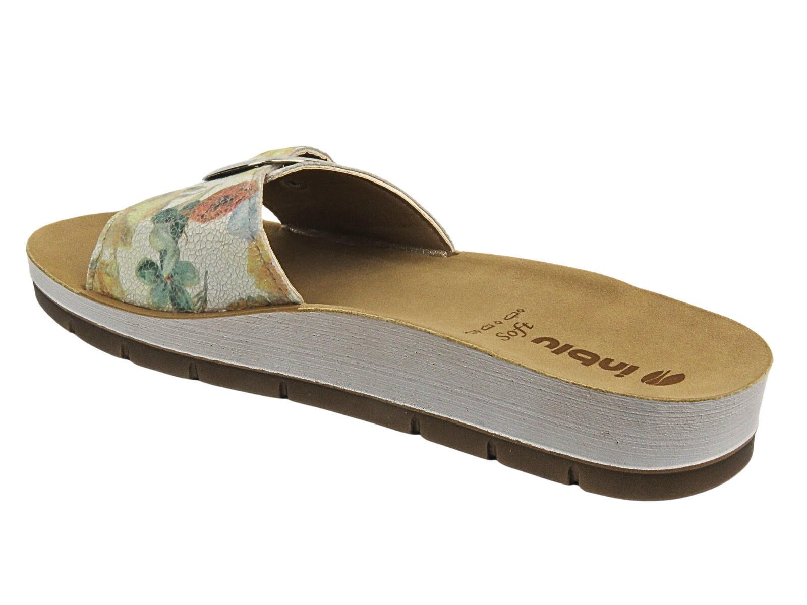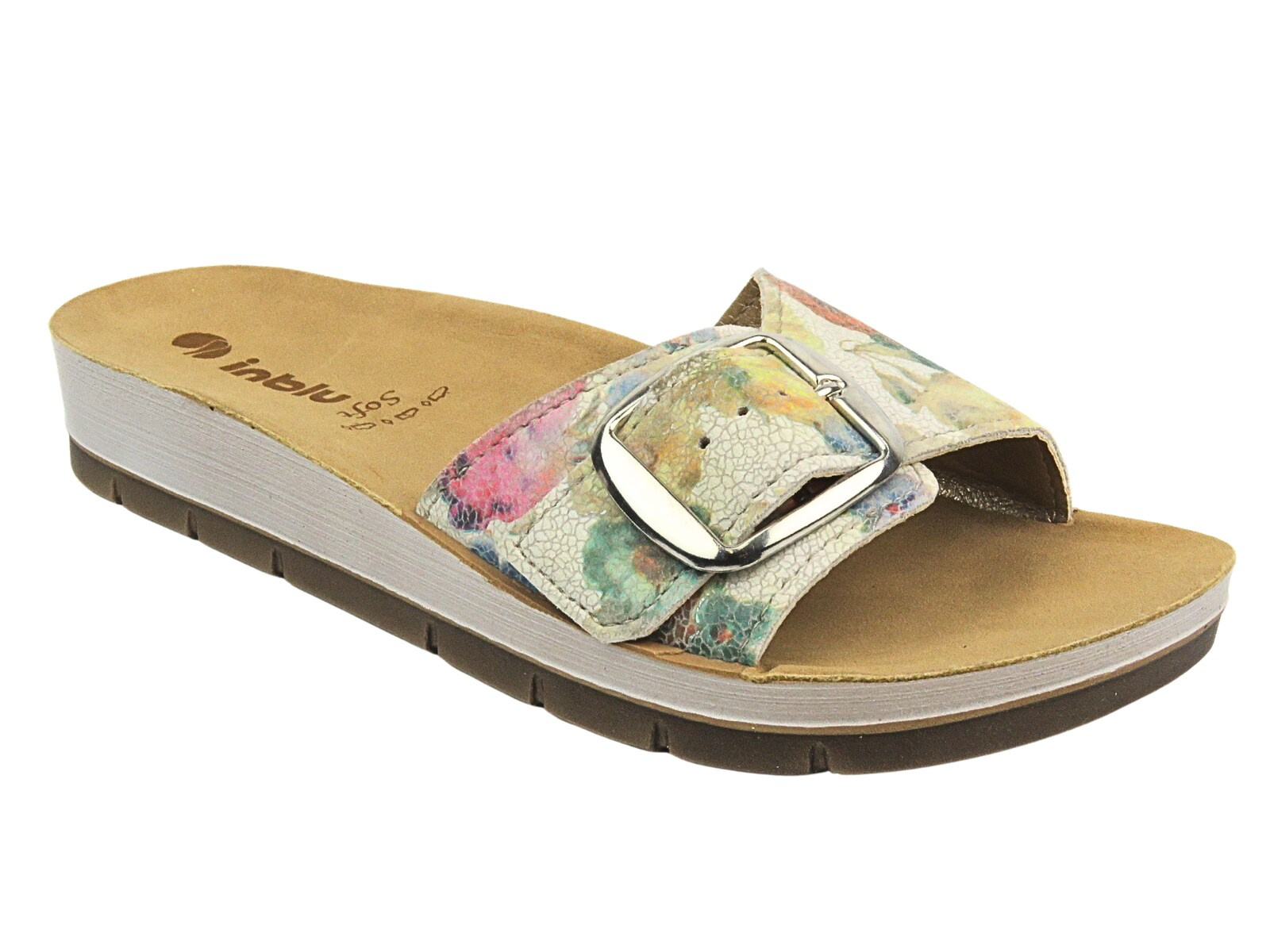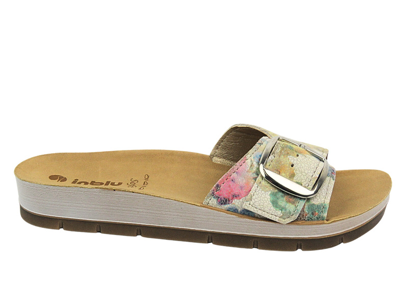Dámské žabky renomované značky Inblu jsou z vnější strany vyrobeny z modré ekologické kůže .