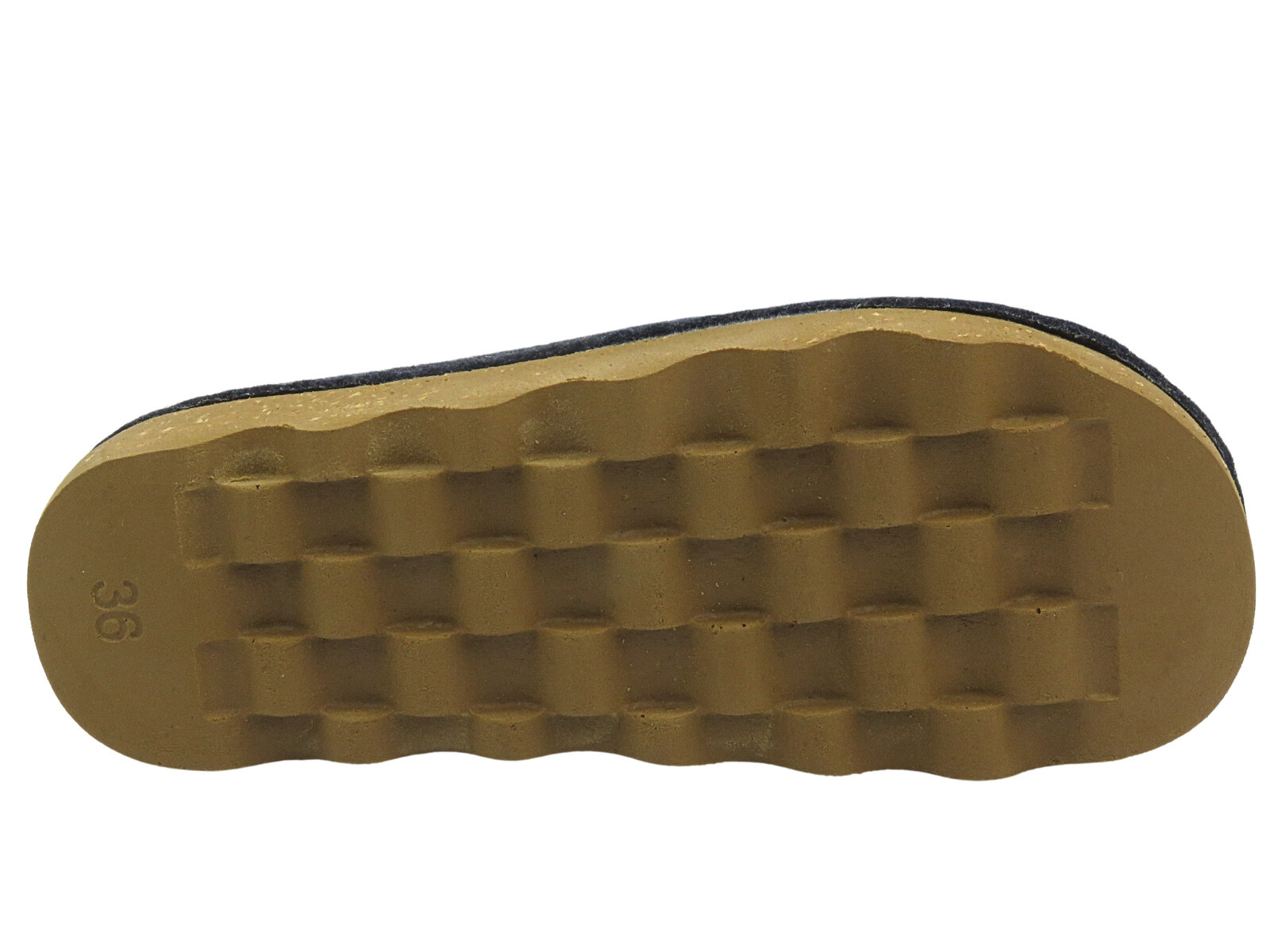 Lehké dámské pantofle z ekologické plsti v šedomodré barvě.