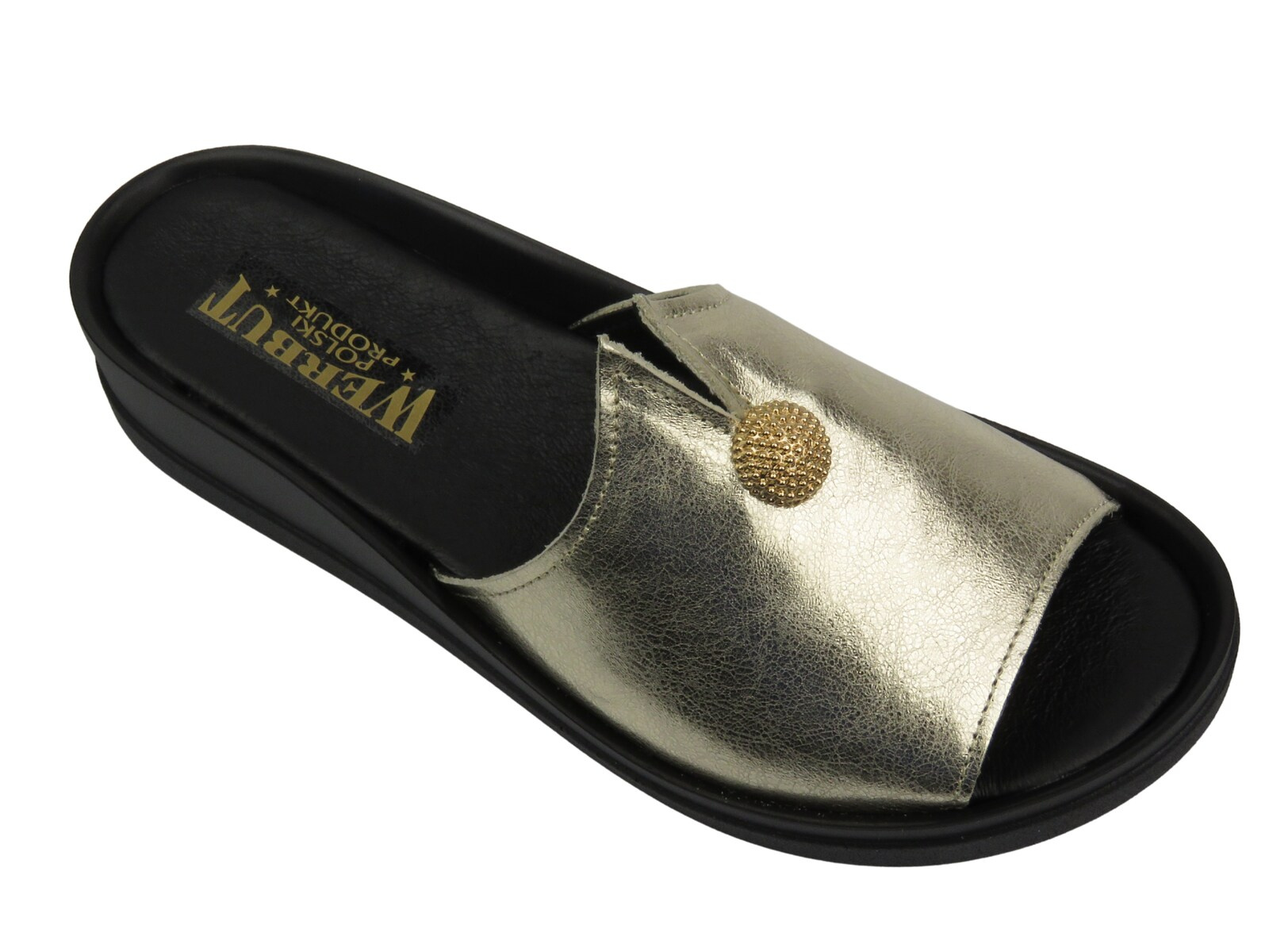 Dámské kožené žabky - Werbut Guzik, zlaté