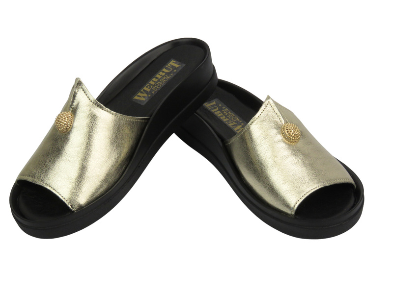 Dámské žabky Werbut jsou vyrobeny z vysoce kvalitní pravé kůže ve zlaté barvě.