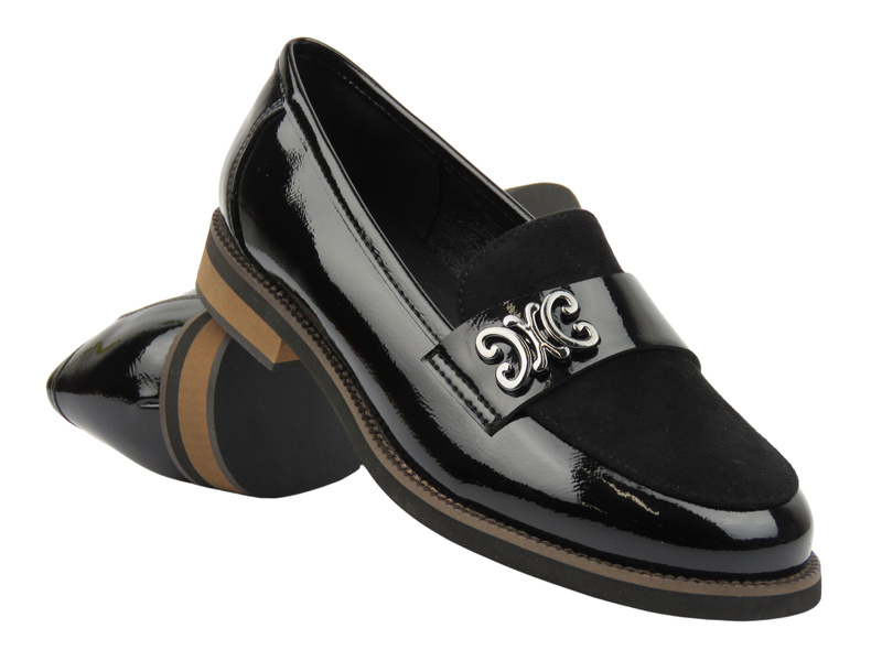 Elegantní polokozačky, dámské mokasíny - Potocki 25-12570, černá lakovaná kůže
