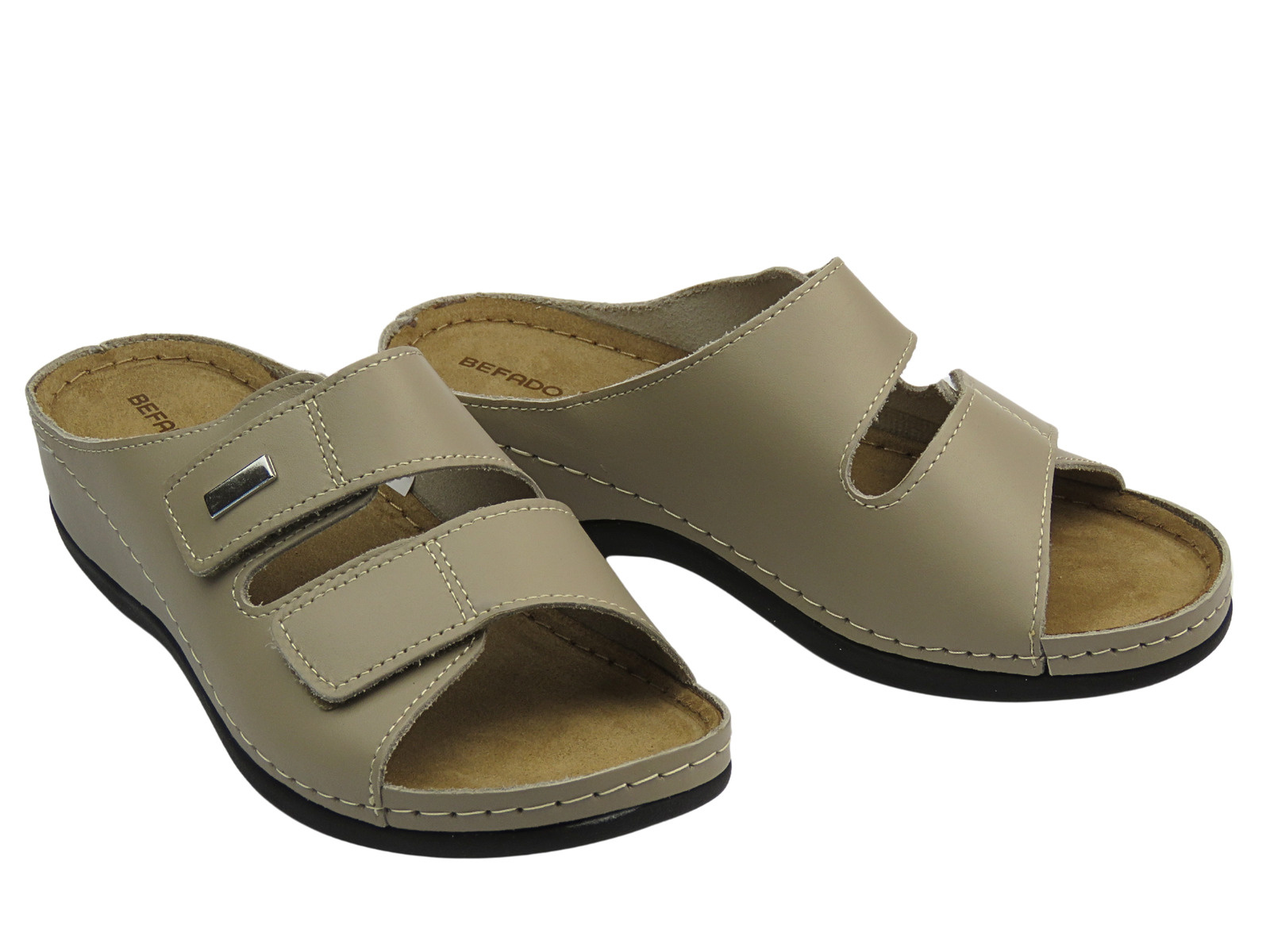 Dámské pantofle s pásky na suchý zip béžové Befado158D282
