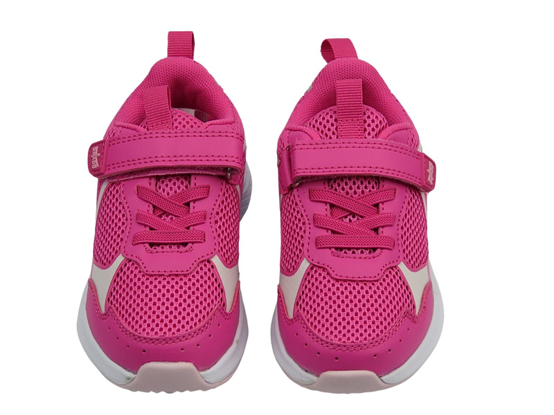 Elastické tkaničky se přizpůsobí šířce dětských nohou. Upevnění suchý zip umožňuje ještě lepší přizpůsobení a rychlejší nazouvání obuvi.
