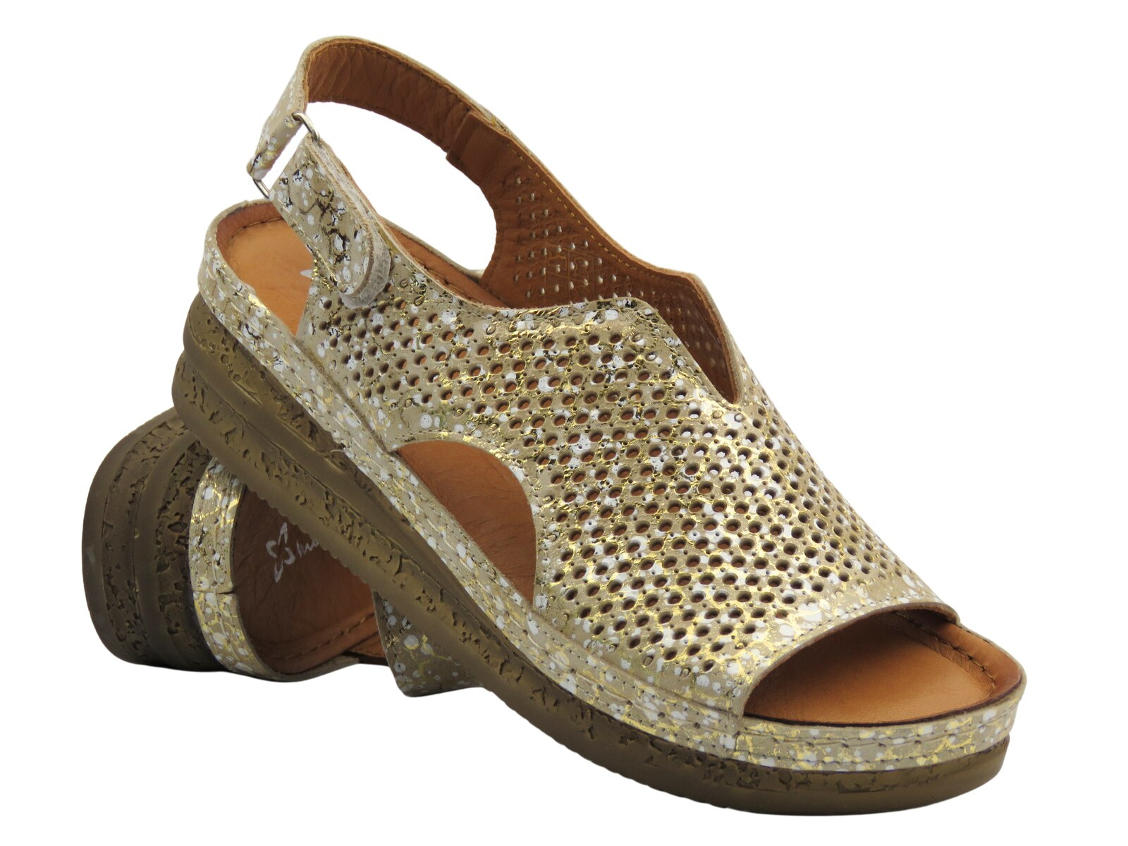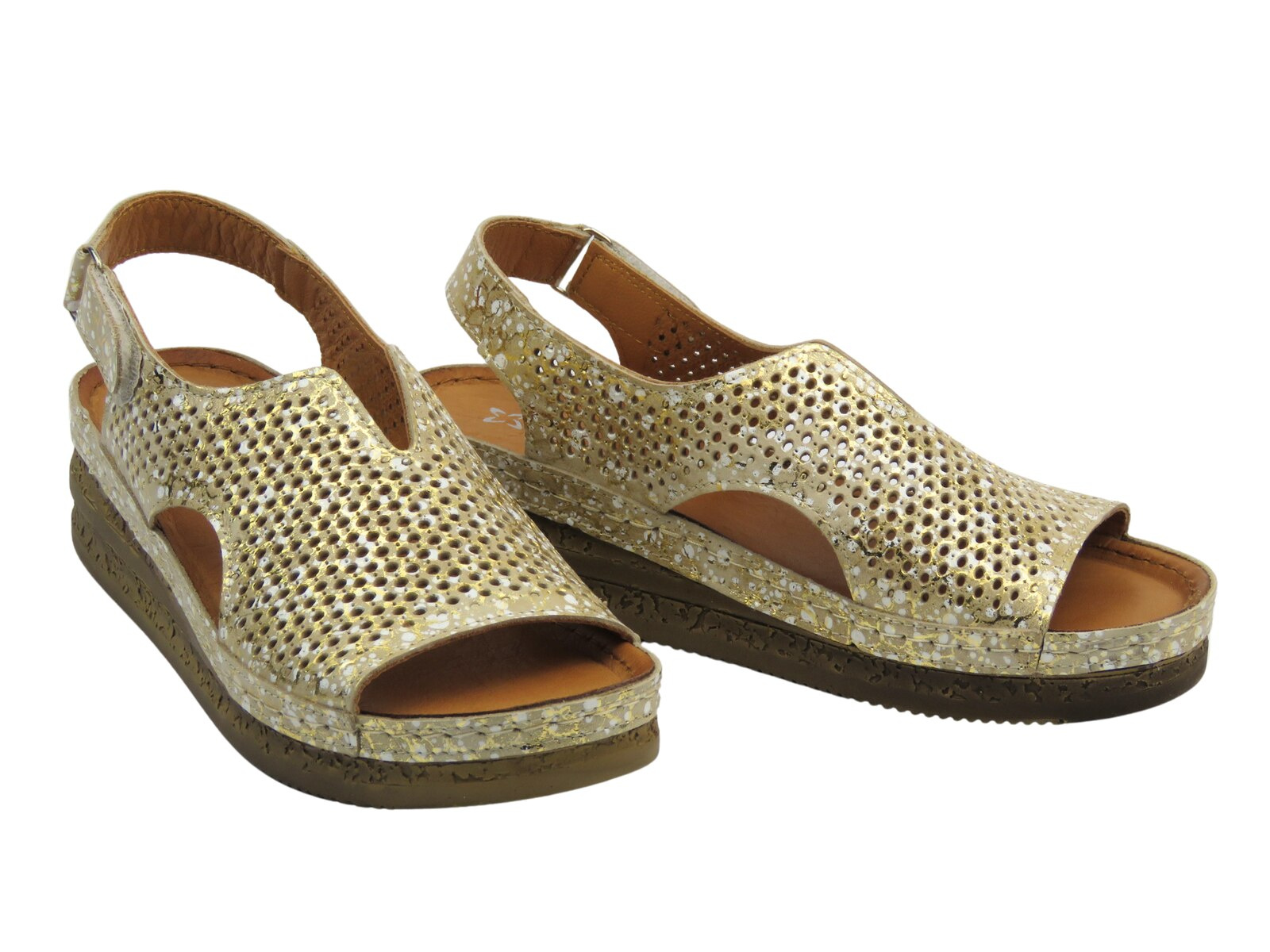 Dámské kožené sandály s ažurovým vzorem ve zlaté barvě Maciejka L4494-25/00-1
