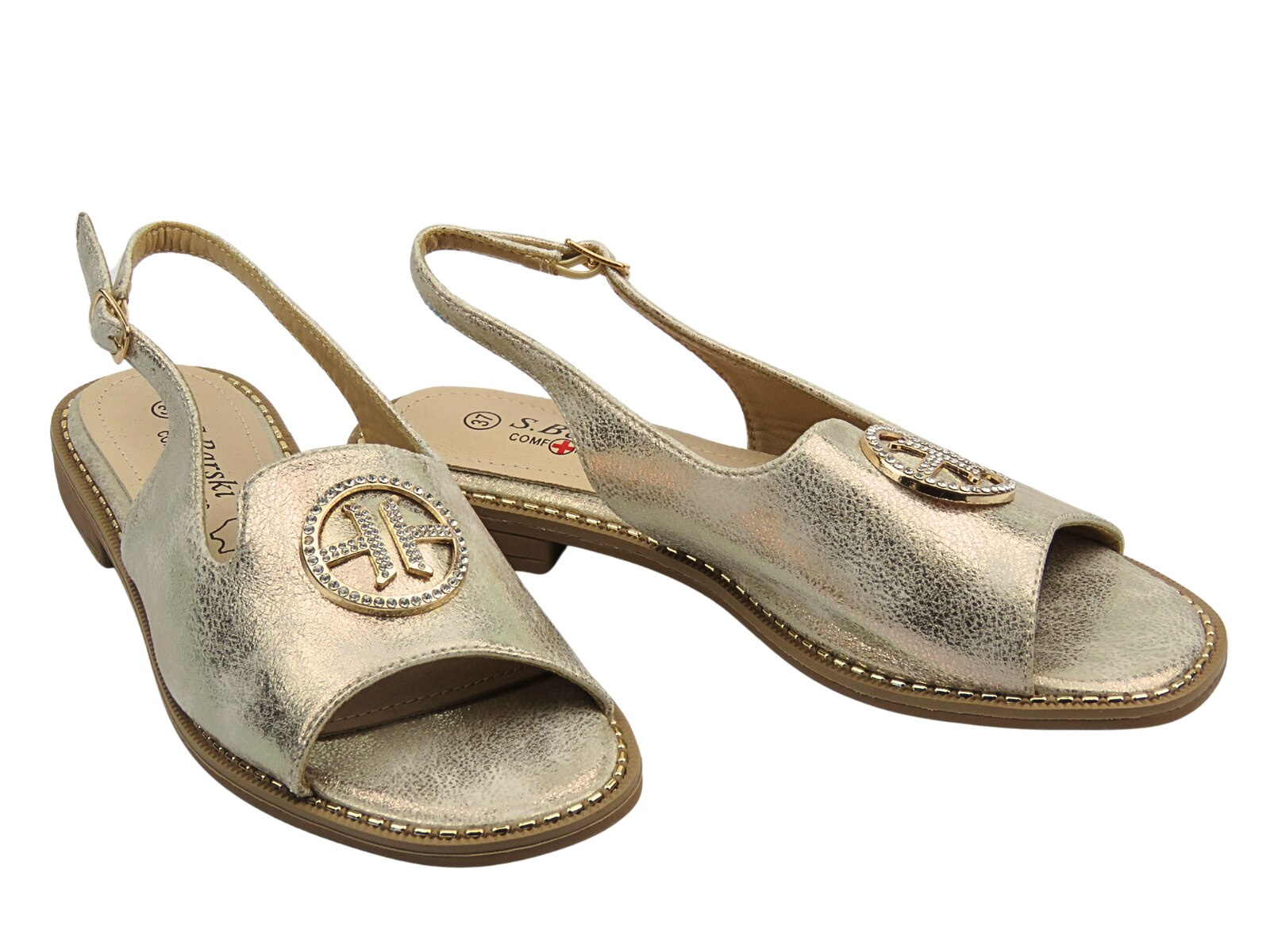 Stylové dámské sandály S. Barski KV51-002 v elegantní zlaté barvě jsou perfektní volbou na letní dny pro ženy, které si cení pohodlí a módního vzhledu.