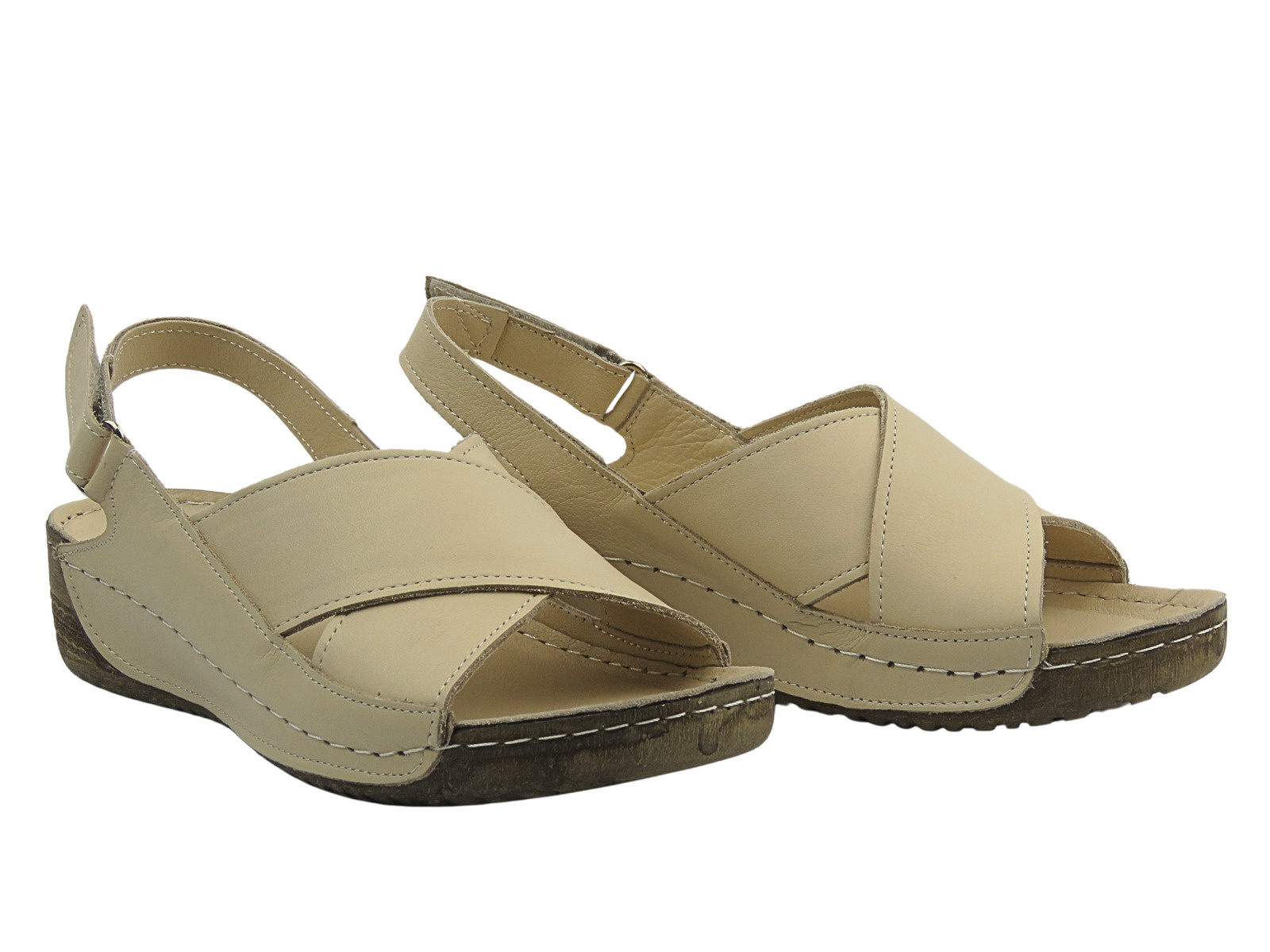 Kožené dámské sandály béžové Nika Komfort H-H311